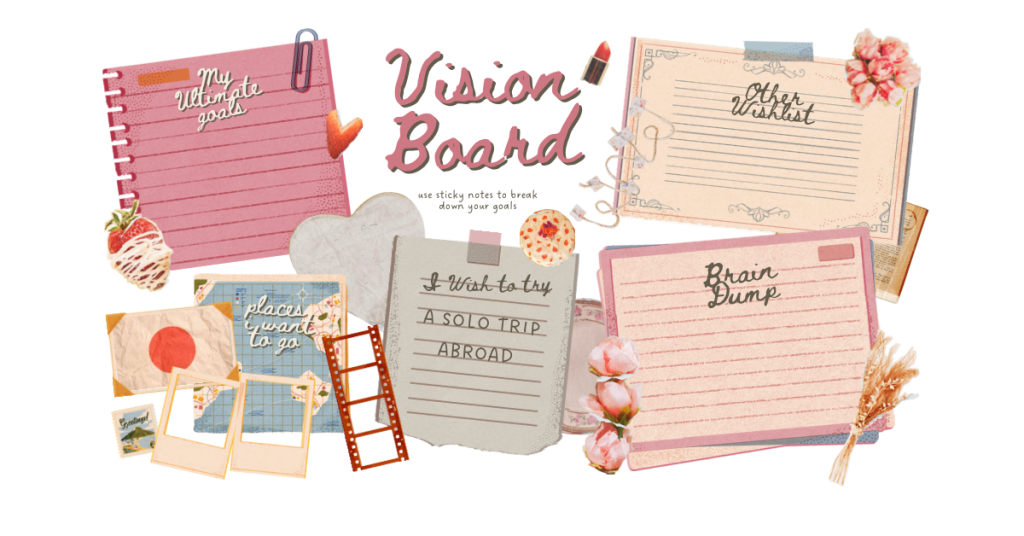 Creating a visual tool can help to turn those thoughts and ideas into something more concrete. Start with a Pinterest board with images, colours, and quotes. This is an easy way to gather a clear direction on your 2026 rebrand. You could take it one step further and create a physical vision board, cut out magazine images, write affirmations, and pin your goals. Choose visuals that inspire you to act. Invite your friends round to plan your own rebrands and to support each other, share goals, and hold each other accountable.