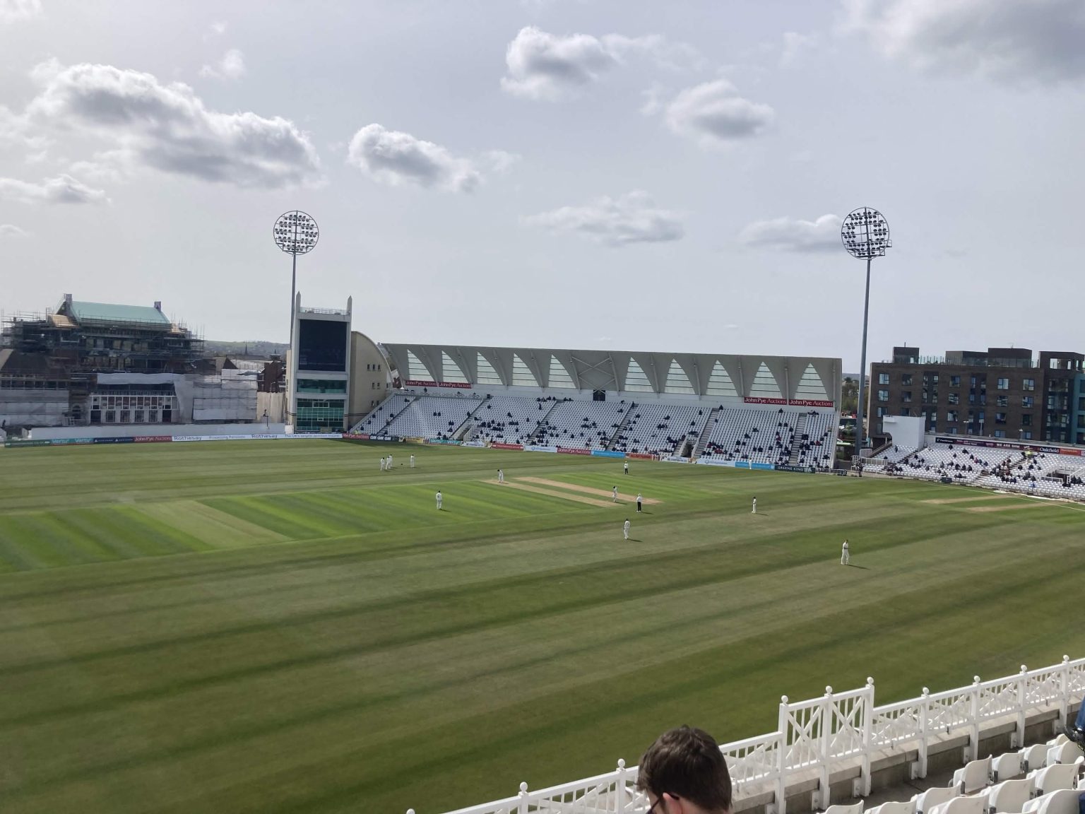 Joe Clarke and Kyle Verreynne came, briefly entertained, and promptly left again; Jack Haynes and Liam Patterson-White, the latter promoted to number 7 in the absence of Lyndon James, battled through to lunch.